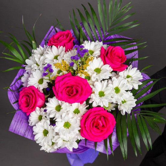 Отличный букет, красивые и невероятно свежие цветы. Ароматные розы. Букет пришел в хорошей упаковке, дополнительно к крафту были в прозрачной пленке, так сказать транспортировочной. Огромная благодарность администрации