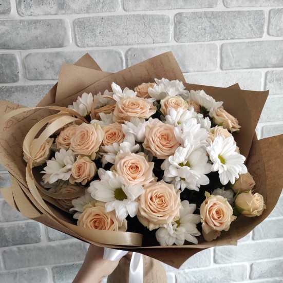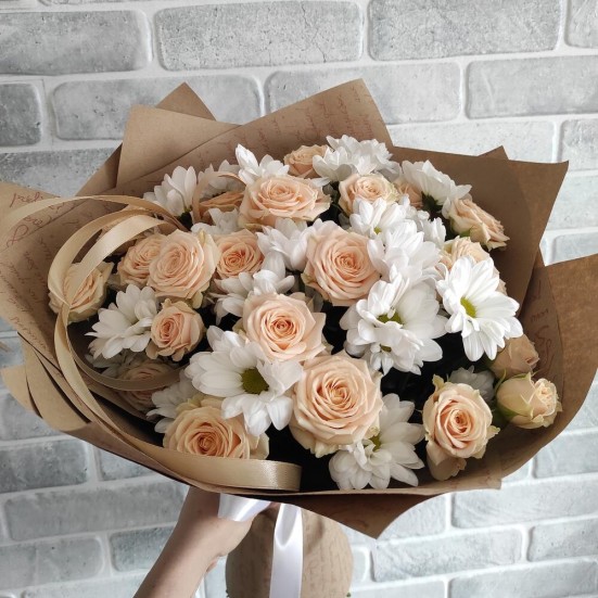 Отличный букет, красивые и невероятно свежие цветы. Ароматные розы. Букет пришел в хорошей упаковке, дополнительно к крафту были в прозрачной пленке, так сказать транспортировочной. Огромная благодарность администрации