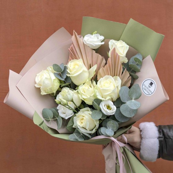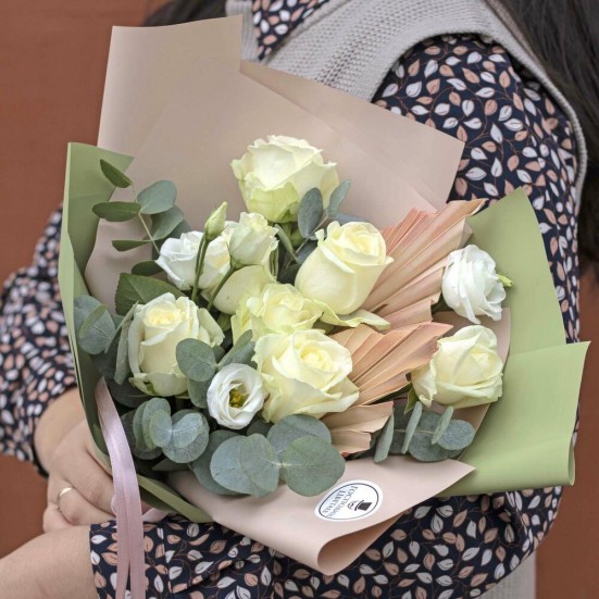 Отличный букет, красивые и невероятно свежие цветы. Ароматные розы. Букет пришел в хорошей упаковке, дополнительно к крафту были в прозрачной пленке, так сказать транспортировочной. Огромная благодарность администрации