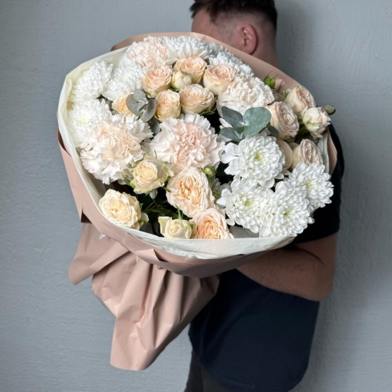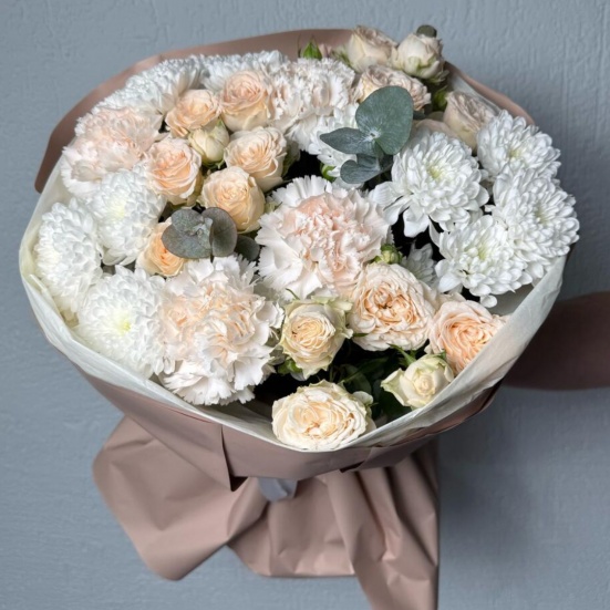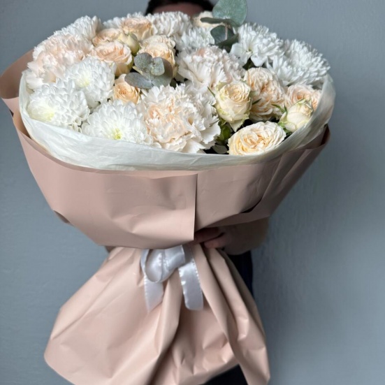 Букет из пионовидных роз и хризантем в Кудрово
