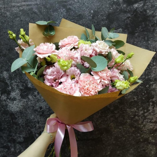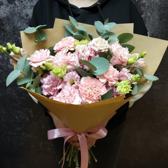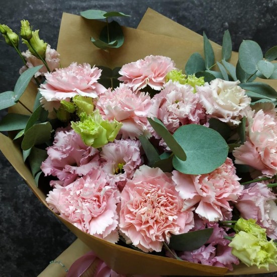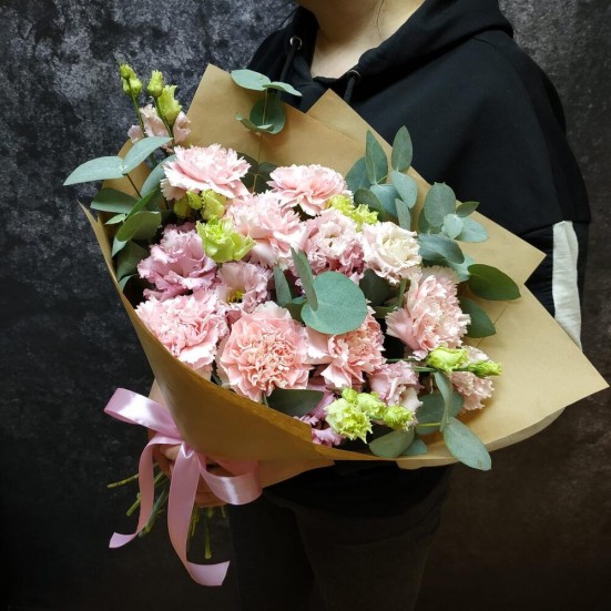 Букет из кустовых гвоздик и эустомы в Кудрово