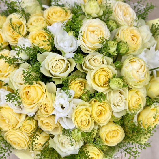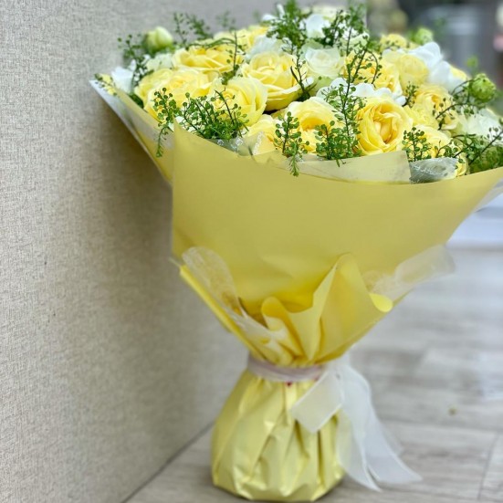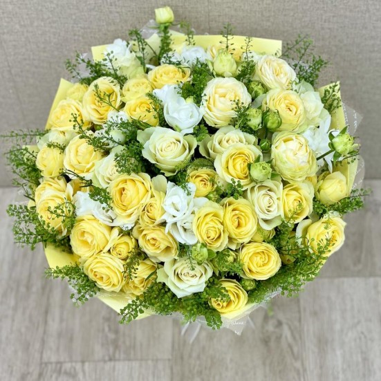 Отличный букет, красивые и невероятно свежие цветы. Ароматные розы. Букет пришел в хорошей упаковке, дополнительно к крафту были в прозрачной пленке, так сказать транспортировочной. Огромная благодарность администрации