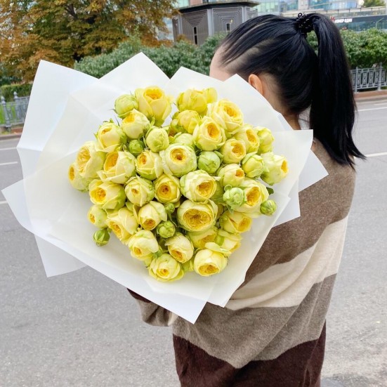 Пионовидные кустовые розы желтые 15 шт.