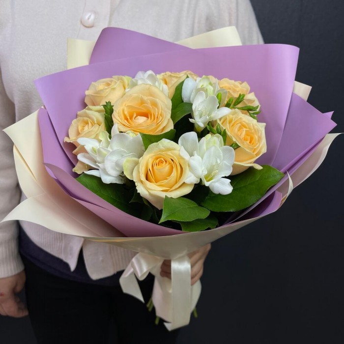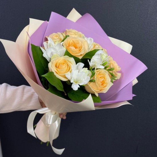 Отличный букет, красивые и невероятно свежие цветы. Ароматные розы. Букет пришел в хорошей упаковке, дополнительно к крафту были в прозрачной пленке, так сказать транспортировочной. Огромная благодарность администрации