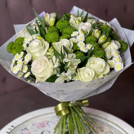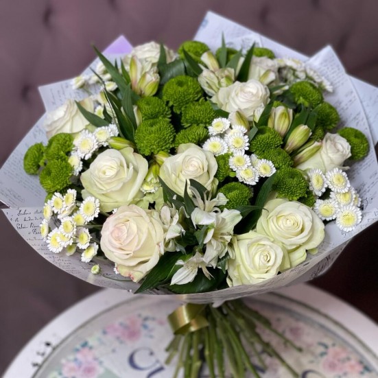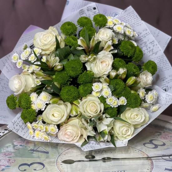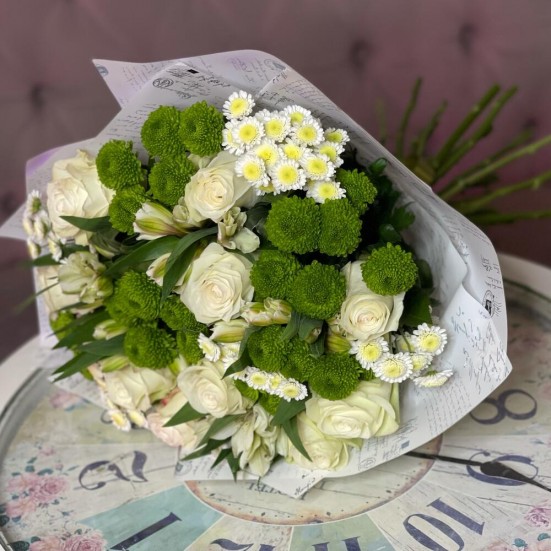 Букет «Розы и зеленые хризантемы» в Кудрово