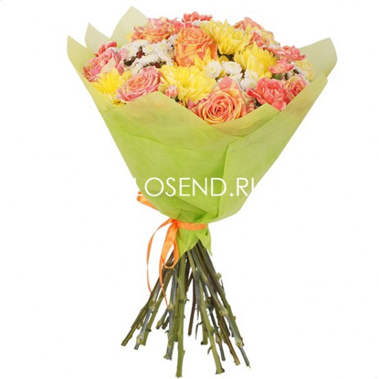 Букет из желтых хризантем и роз