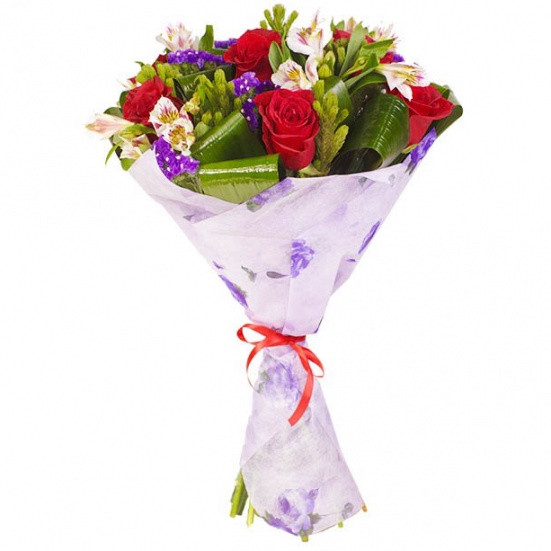 Букет из красных роз и белой альстромерии в Кудрово